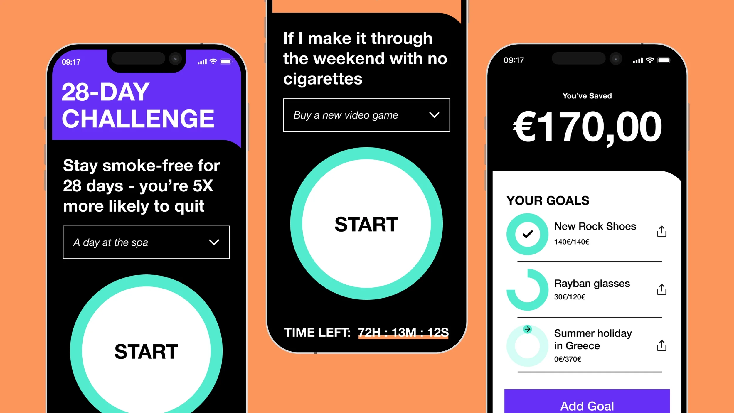 Most smoking cession apps on the market have a bland and ominous feeling to their UI, resulting in large drop off in usage.