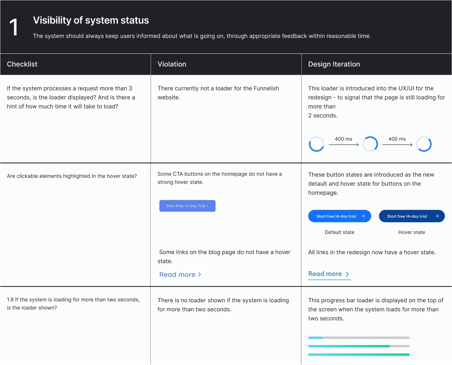 I conducted a comprehensive evaluation of the website using the heuristic evaluation framework developed by Norman Nielsen. Additionally, I employed a template provided by Adam Fard Agency. The third column serves dual purposes: