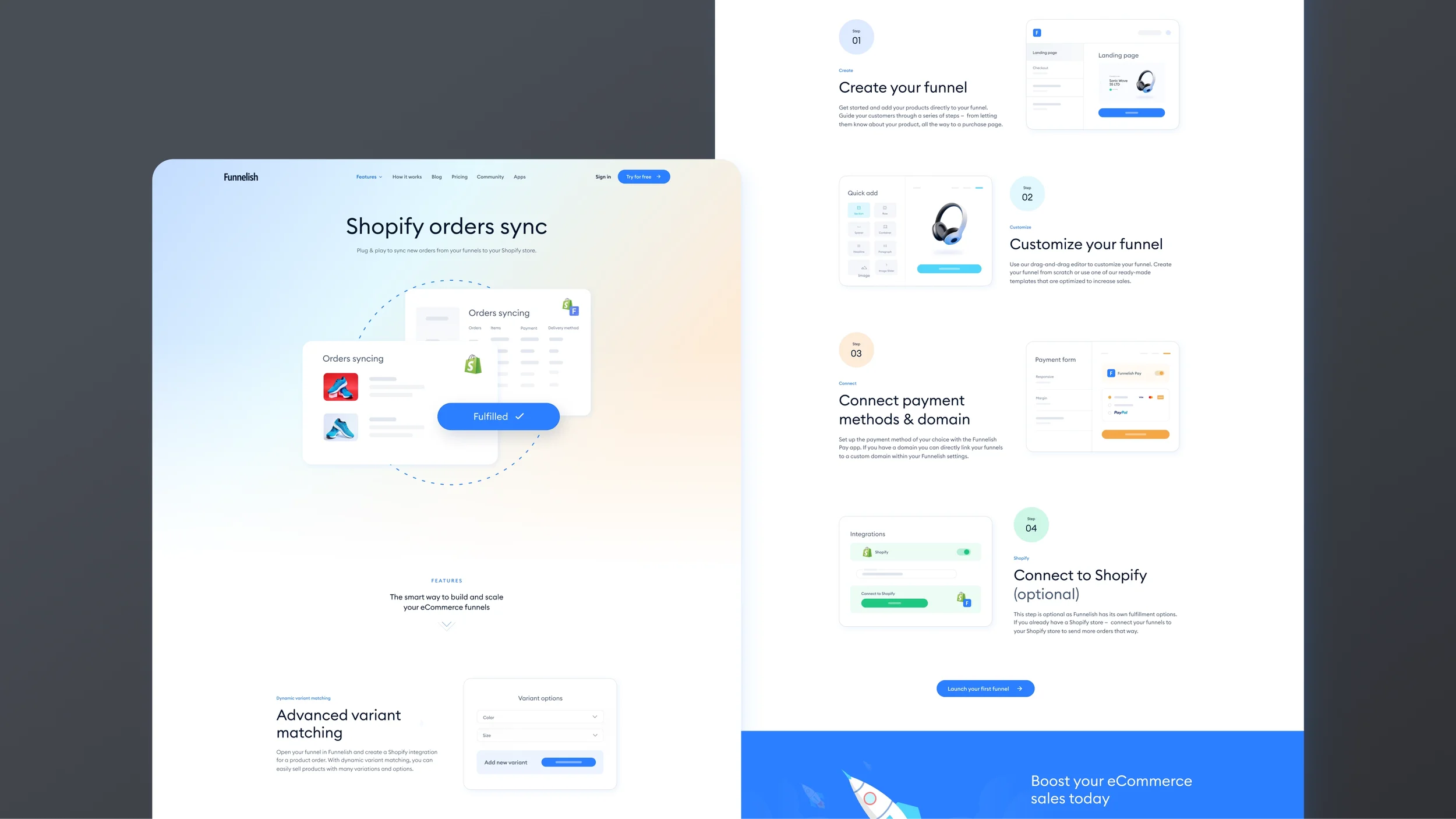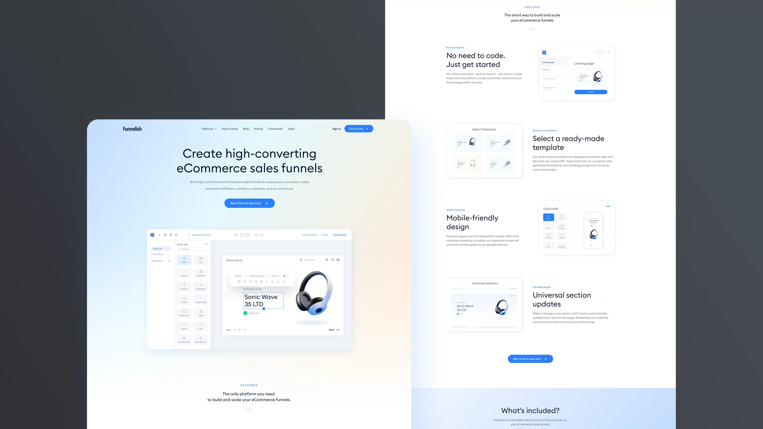 Funnelish, an eCommerce funnel-building platform, needed to enhance its UX and differentiate itself in a competitive market to increase user sign-ups, reduce bounce rates, and effectively communicate new features to online entrepreneurs.