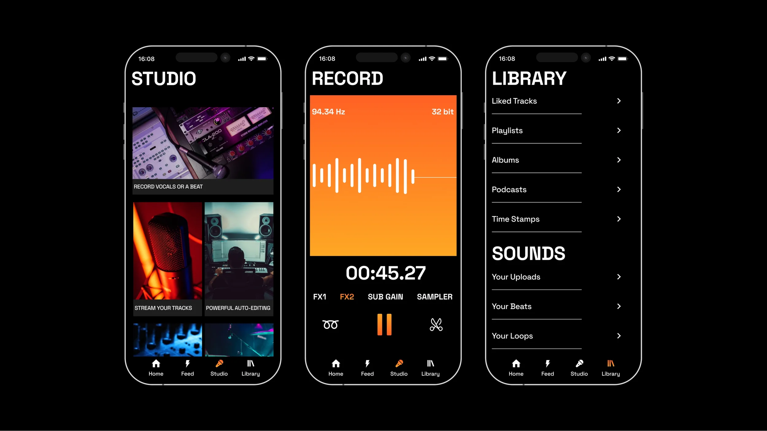 I redesigned the mobile app to empower aspiring artists with new creation tools (in-app studio and recorder), a comprehensive Library section, streamlined navigation, and a bolder visual identity that makes key features intuitive to discover.