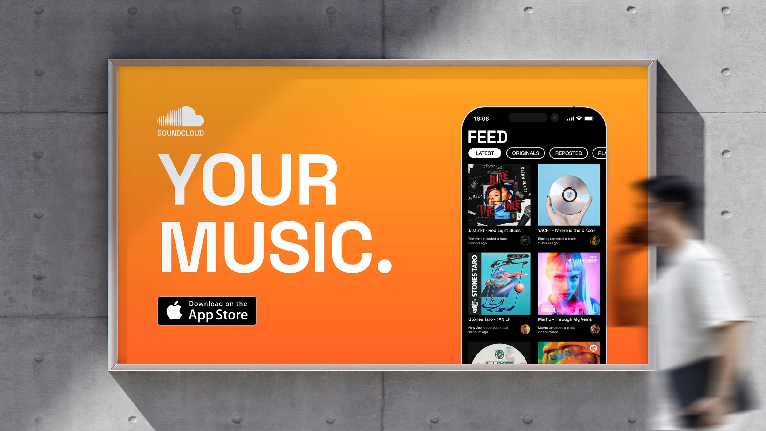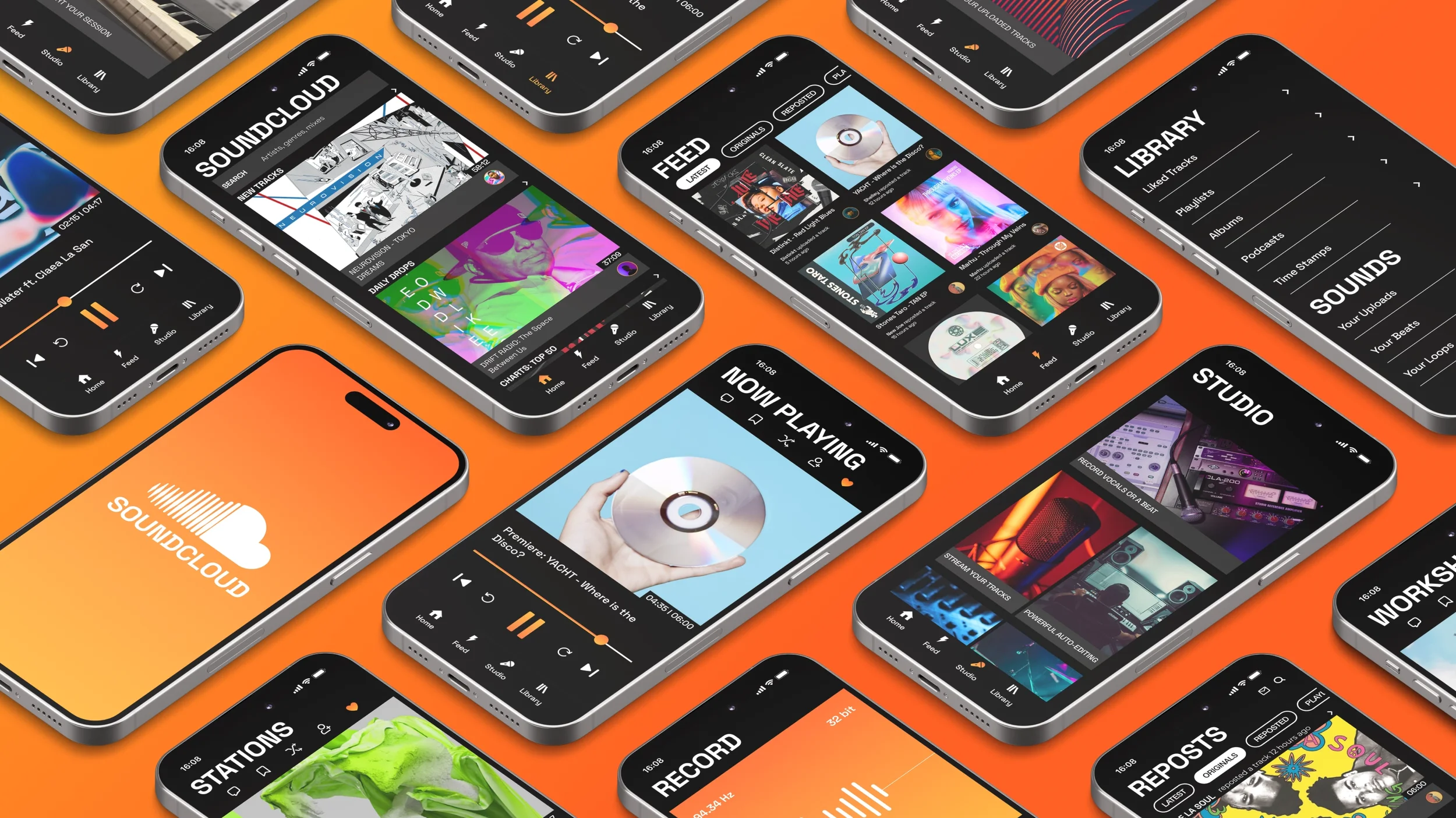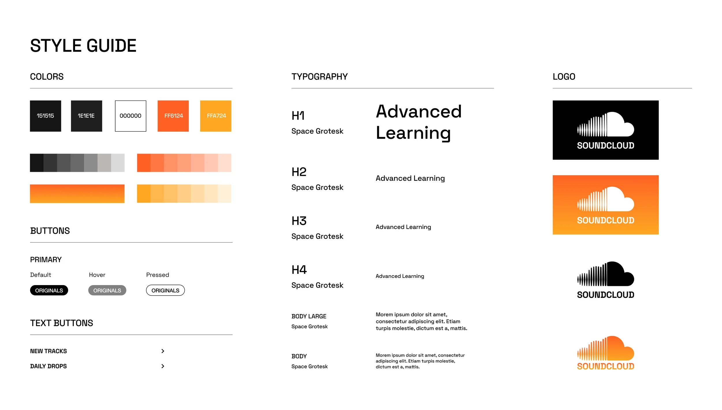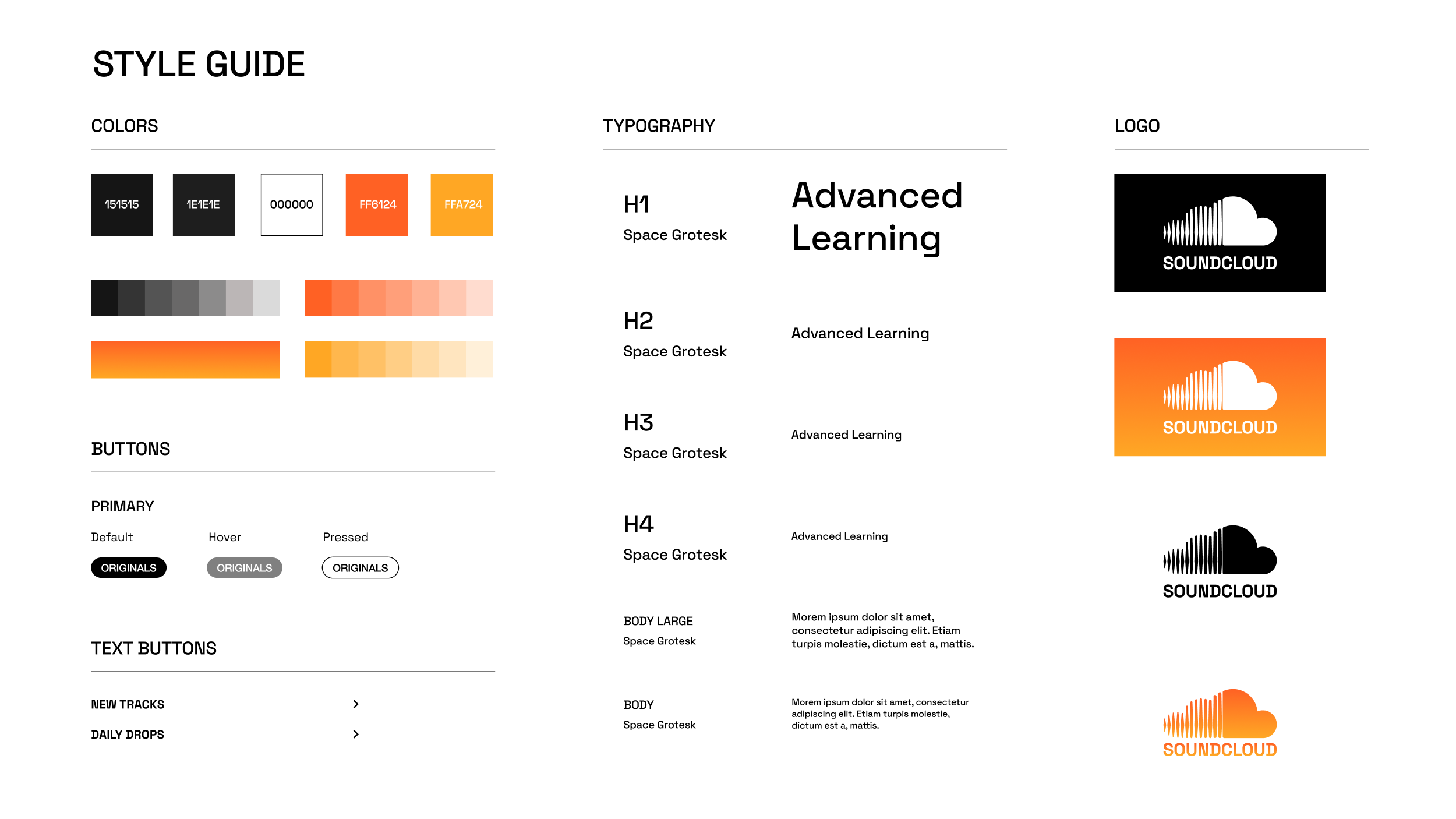 SoundCloud orange with a slight gradient (orange/yellow) as the accent color, in order to retain a sense of familiarity with their current branding.